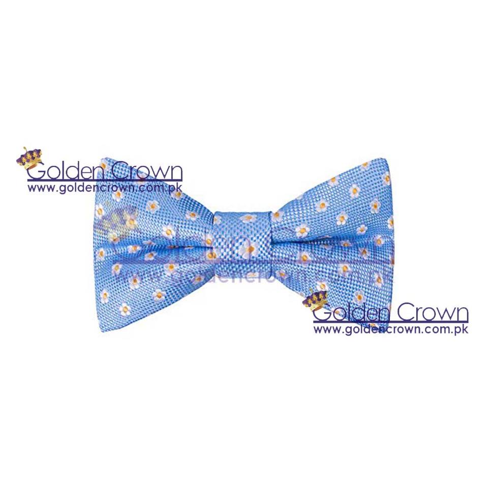 Handmade High Quality Sky Blue Dots Bow Tie and Cravats Woven and Embroidered with Silk Polyester Cotton Material