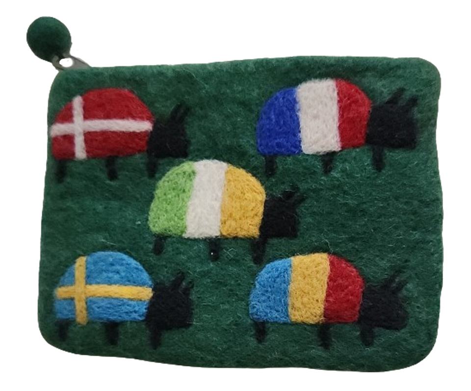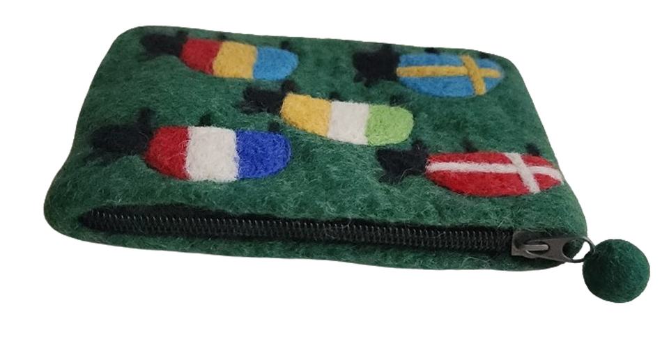 Handmade High Quality Vintage Style Felt Wool Coin Purse Flag Zipper Closure