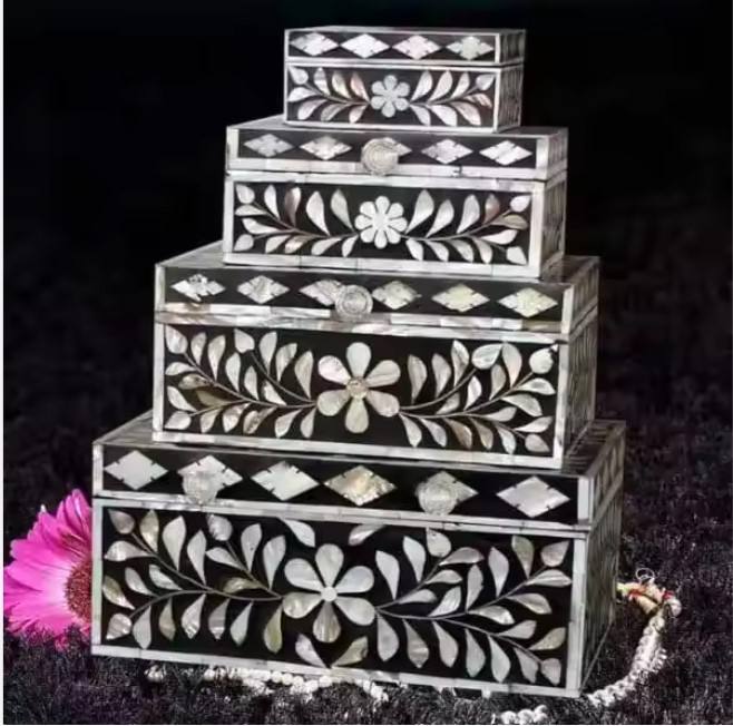 Handmade Home Decorative Tassel Boxes Top Quality Jewelry Large Resin Bone Inlay Storage Box Antique Floral Box Gift Vintage