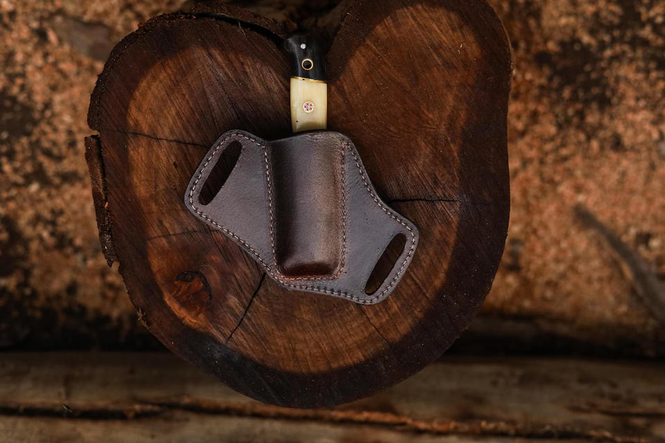 Handmade Horizontal Leather Drop Point Camping Knife Sheath for Fixed EDC Customizable Belt Sheath Industrial Grade Wholesale