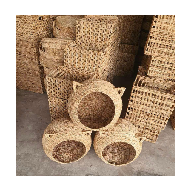 Handmade Hyacinth Dog Cat Pet Bed Basket Natural Grass Nest Eco-Friendly Sleeping House for Small Pet Indoor Use
