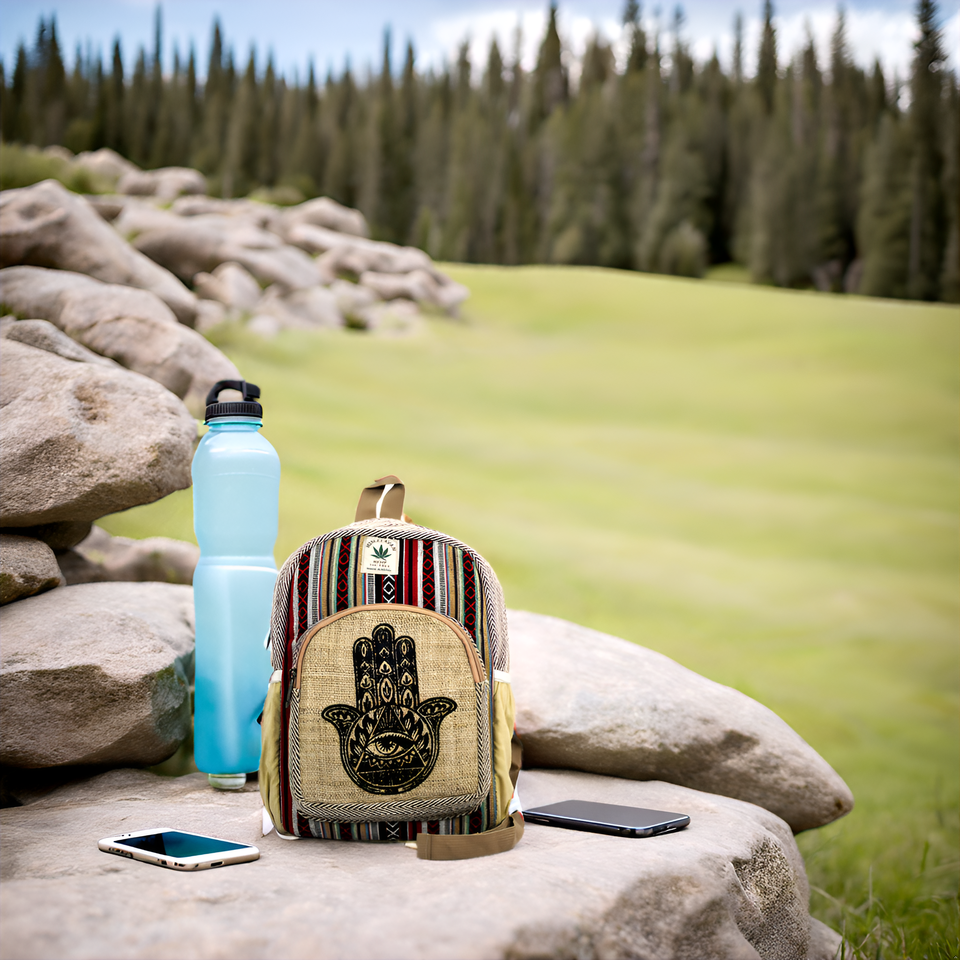 Product Name:Himalayan Hemp Cotton Backpack With Eye In Hand Design