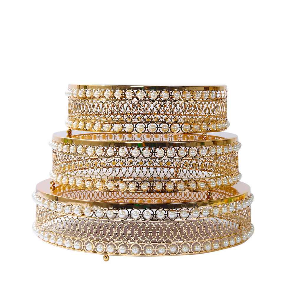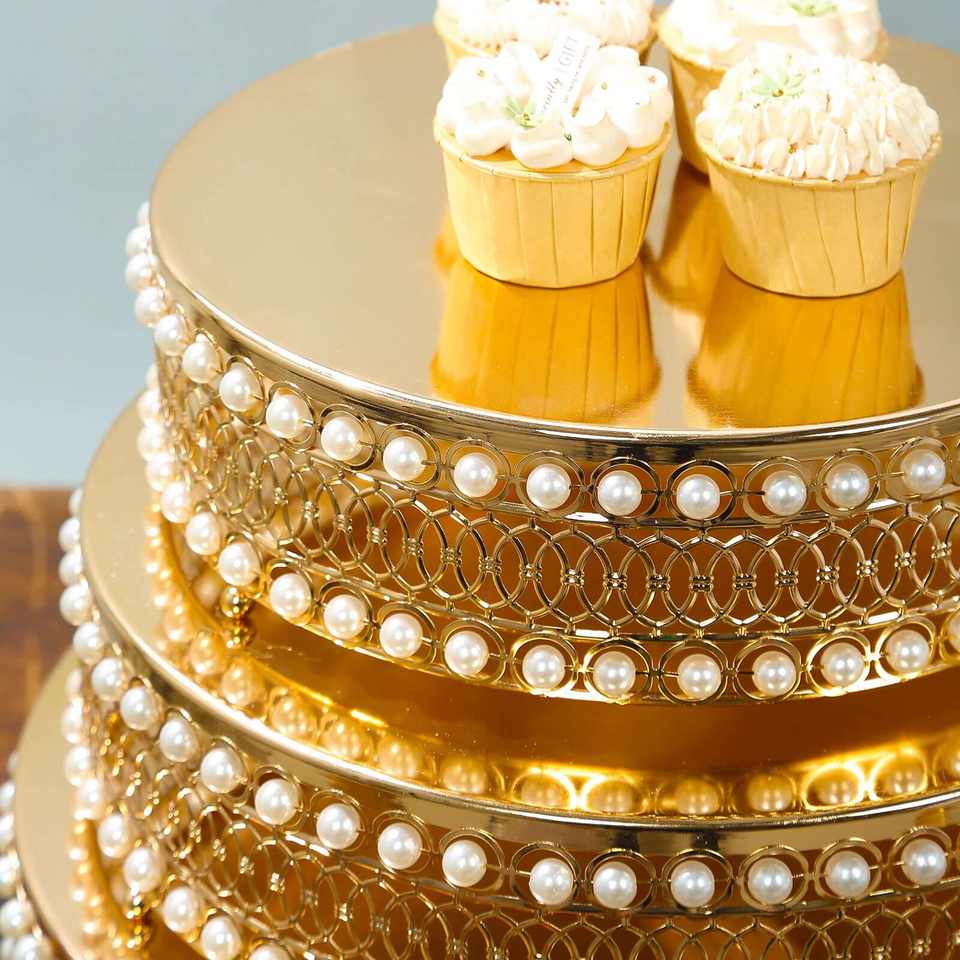 Handmade India Stylish Golden Metal Cake Stand for Formal Gatherings Suitable for Receptions Banquets & Organized Event Displays