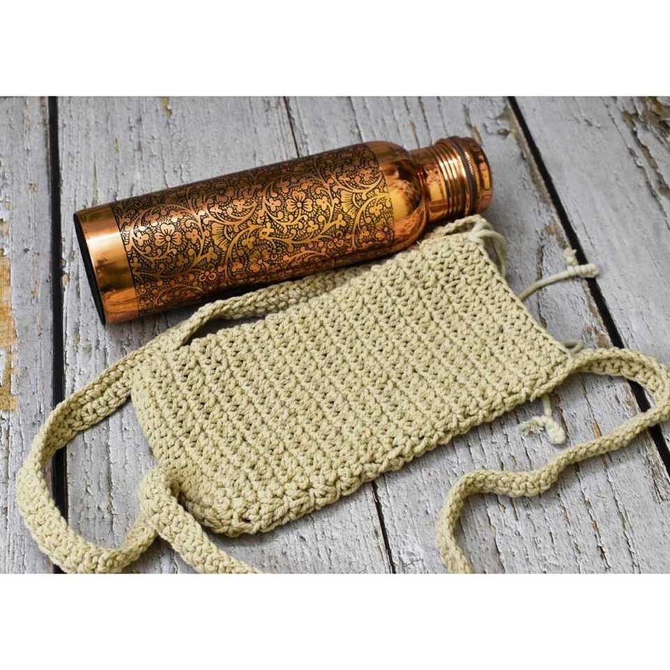 Handmade Indian Ayurveda Hammered Copper Bottle Premium 650ml Immunity Booster Drinkware with Sport Cap and Lid