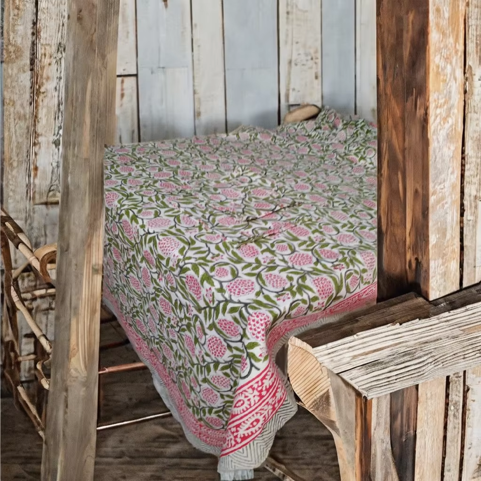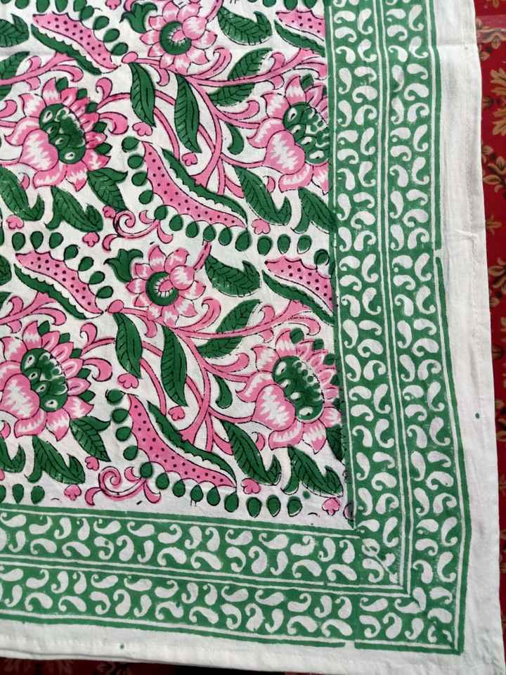 Handmade Eco-Friendly Indian Block Print Floral Twill Cotton Canvas Tablecloth Rectangle Table Cover Traditional Home Decor