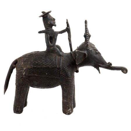 Handmade Indian Brass Antique Bronze Tribal Man Elephant Figurine Sculptures Figurine Statue Home Decor Gift Items SNP-1974