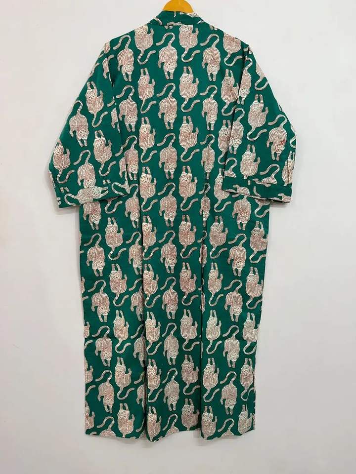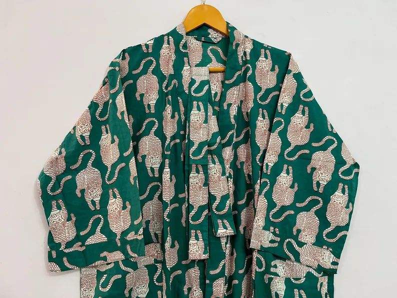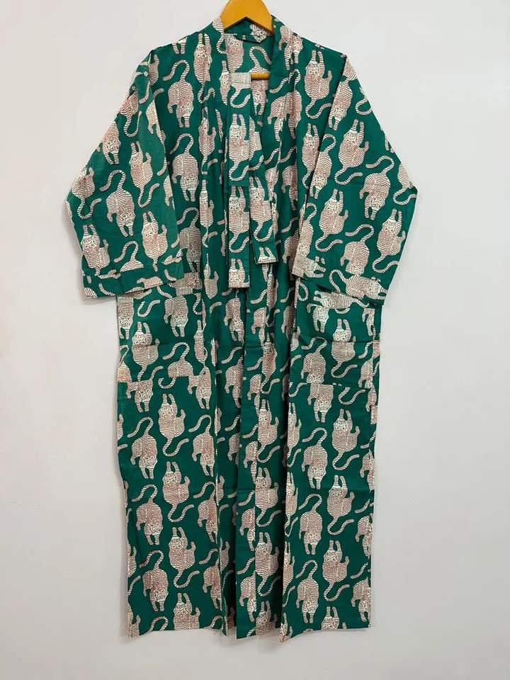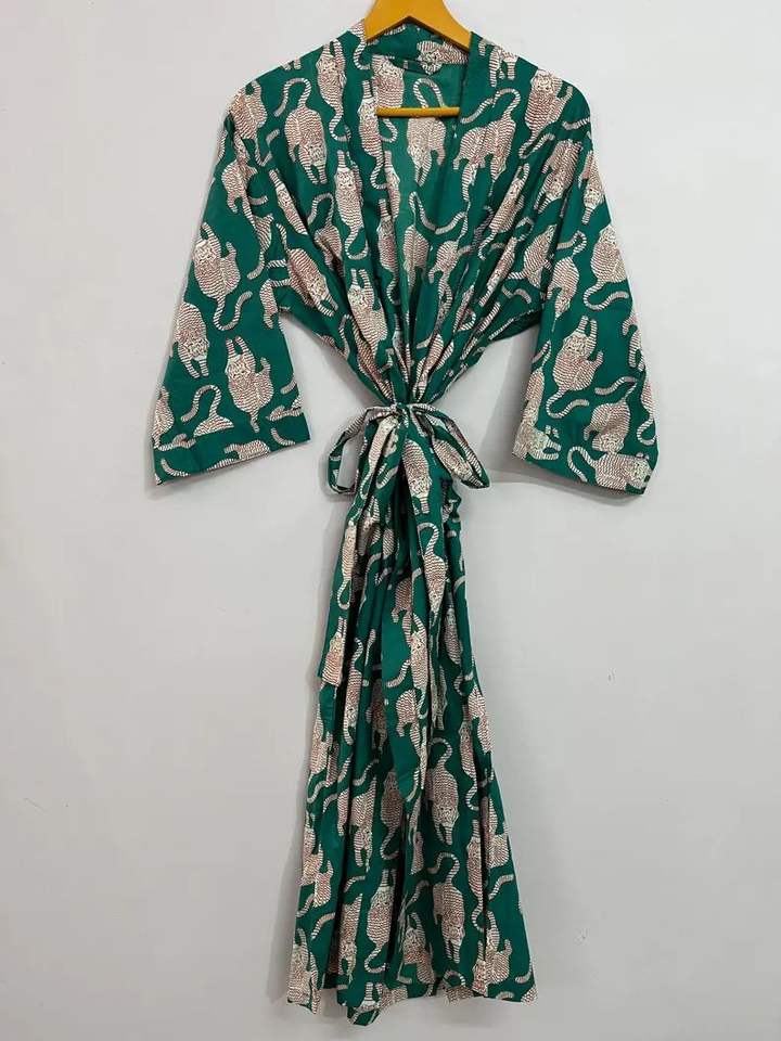 Handmade Indian Caftan Kimono Robe Unisex Light Weight Floor-Length Night Wear Bikini Cover Top Belt Casual Dresses for Beach