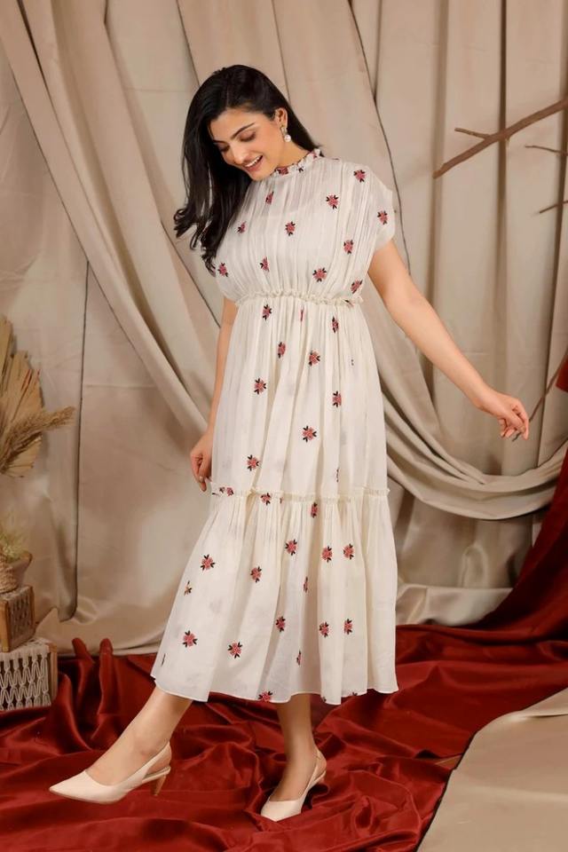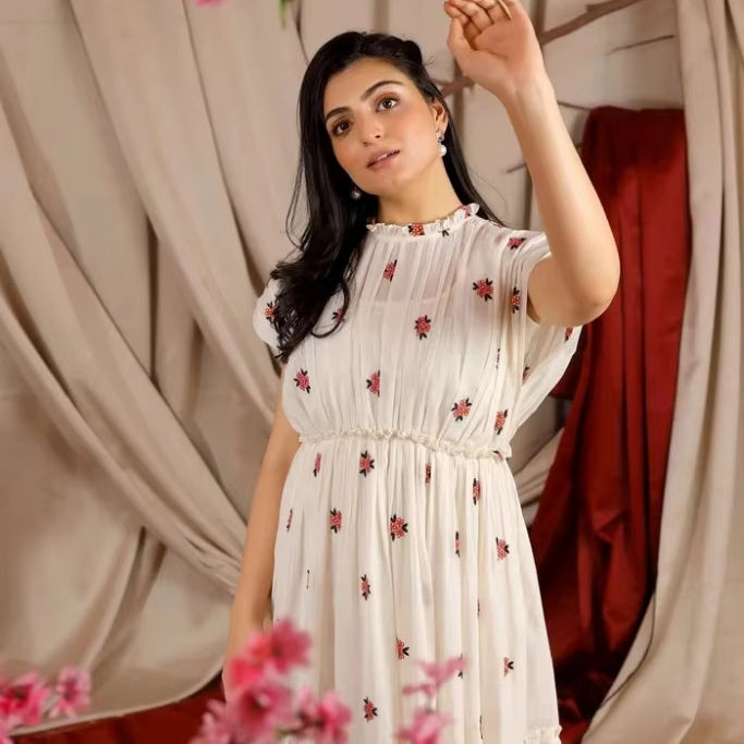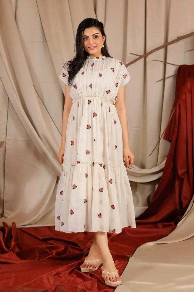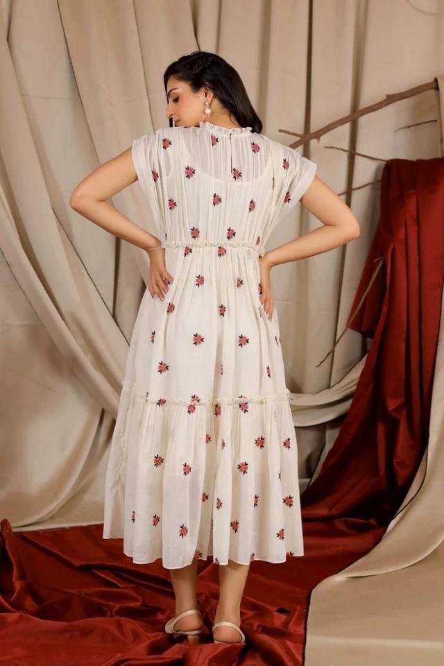 Handmade Indian Cotton Floral Printed Dress Knee-Length Summer Casual Wear Personalized Bride Wedding Gift ODM Front Placement