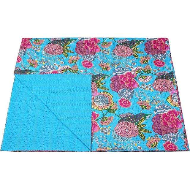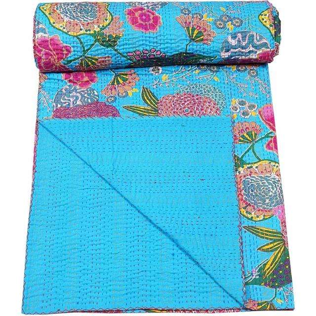 Handmade Indian Cotton Kantha Quilt Traditional Rajasthani Reversible Paisley Bedspread Throw Blanket Twin Size Home Washable
