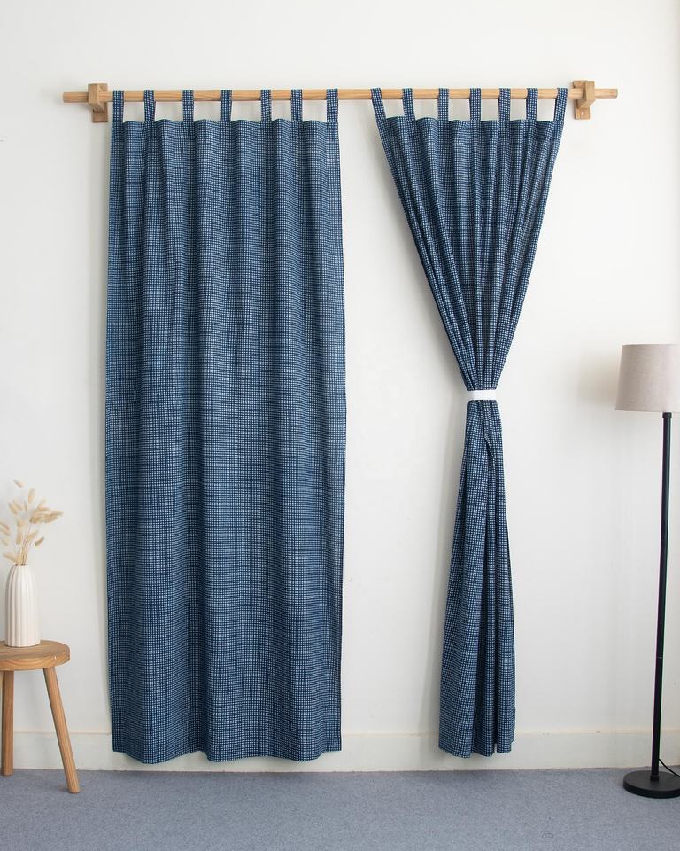 Handmade Indian Cotton Striped Printed Curtains Hand-Block Printed Custom Size for Bedroom Window Home Decor
