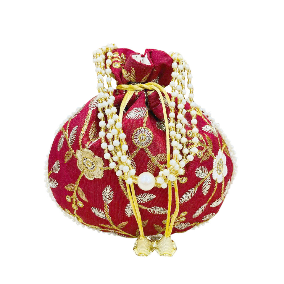 Handmade Indian Fabric Clutch Potli Embroidered Handbag for Chic Wedding Parties and Celebrations Return Gifts