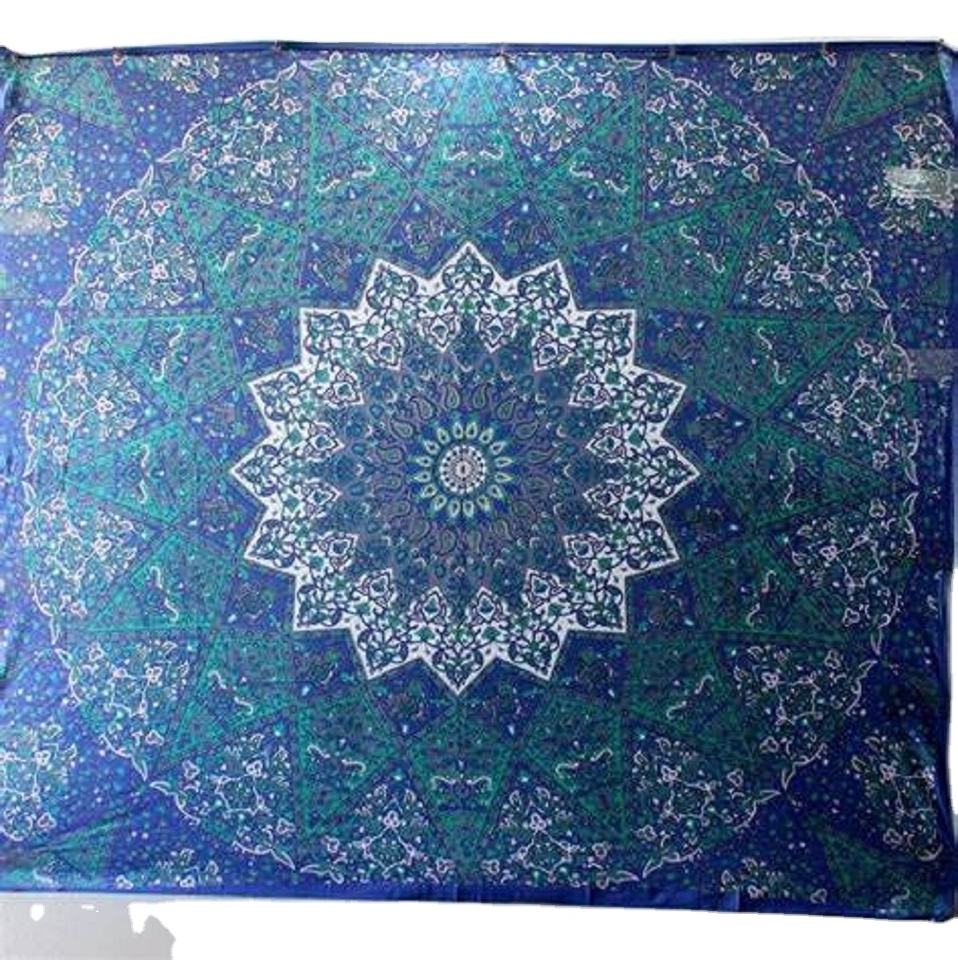 Handmade Indian Hippie Star Mandala Tapestry Blue Elephant Printed Bedspread for Ethnic Decor Art Wall Hanging in Dorm Bedroom