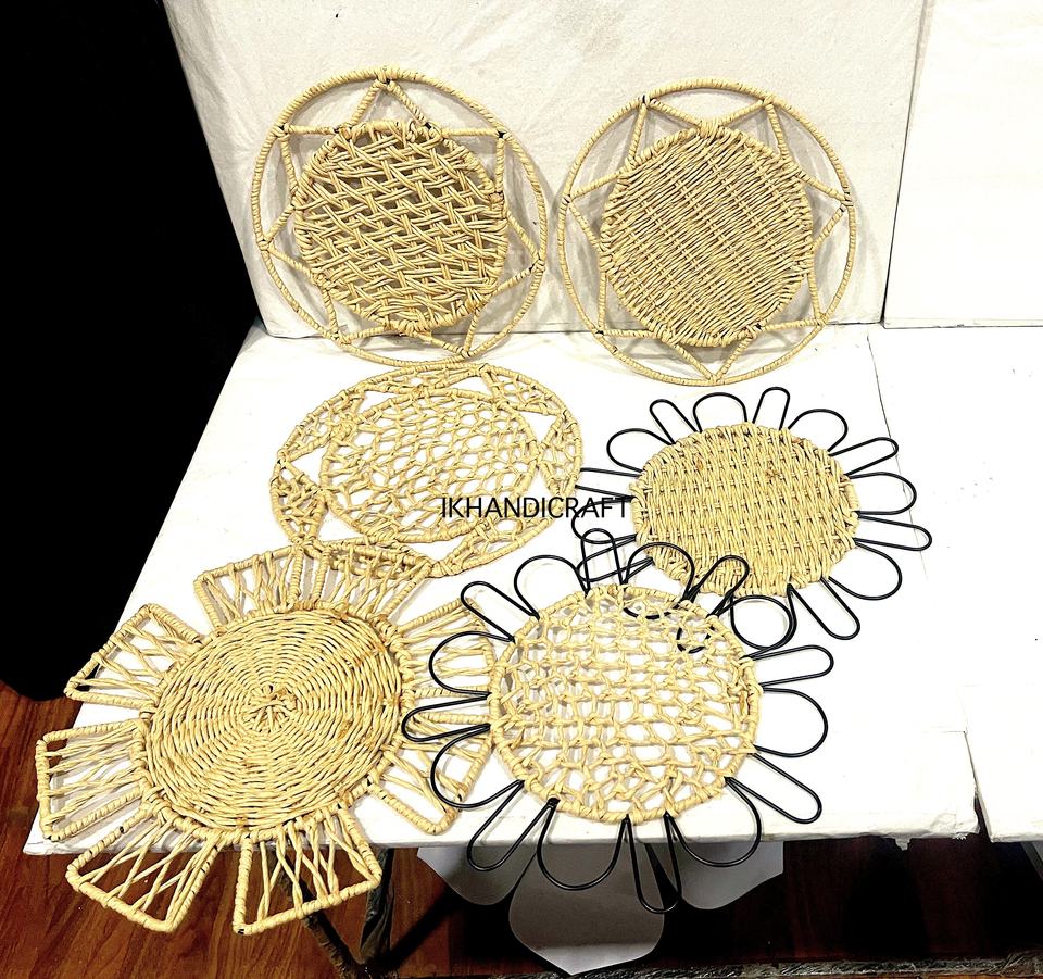 Handmade Bohemian Indian Bamboo Tableware Hot Wicker Woven Plate Straw Paper Raffia Wedding Event Party Placemats Coasters