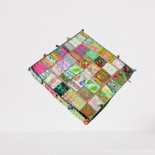 Handmade Indian Pure Cotton Bohemian Floor Cushion Covers Patchwork Meditation Floral Festival Pillowcase for Decorative Home