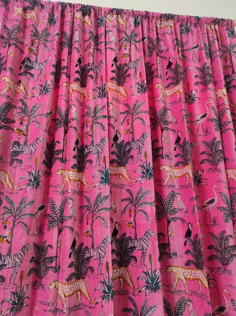 Handmade Modern Boho Hippie Patterned Pink Velvet Curtains Hotel Decorative Cotton Window Shade Indian Vintage Style