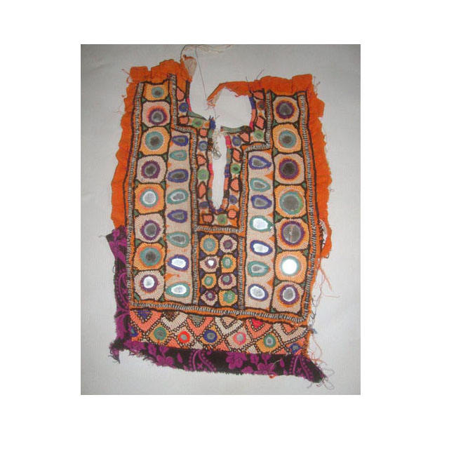 Handmade Indian Vintage Neck Yoke Embroidery Mirror Work Applique Patch Chenille Cotton Fabric DIY Sewing Craft Woven Technique