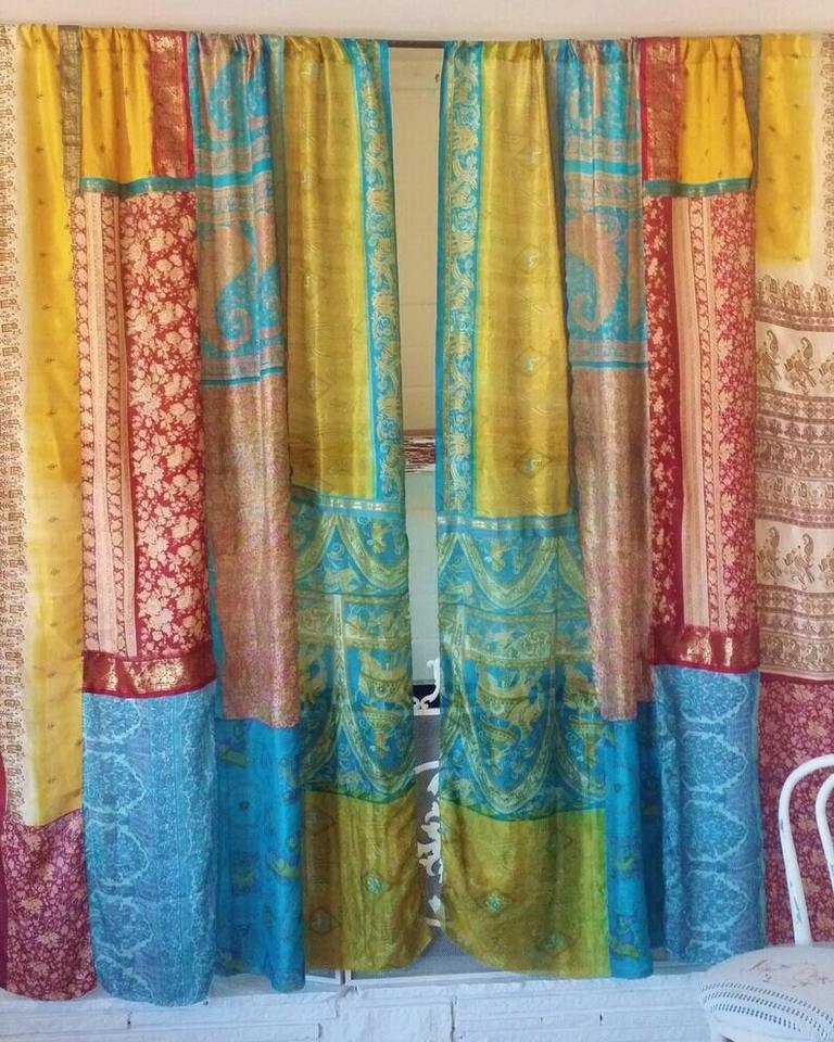 Handmade Indian Vintage Old Silk Sari Fabric Color Patchwork Door Window Curtain for Home Room Shade Decor Valance