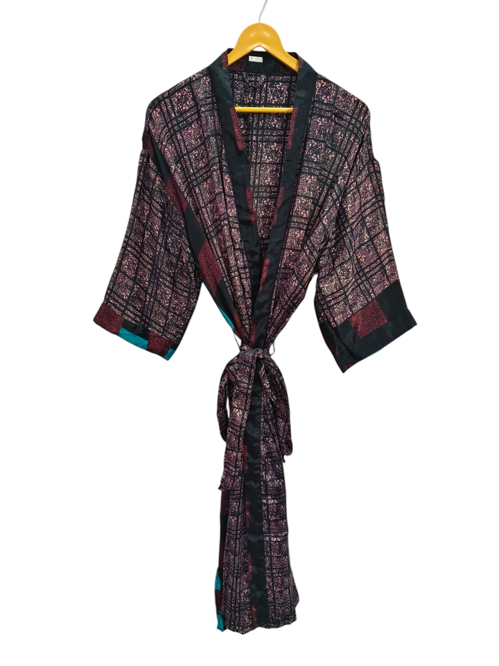 Handmade Indian Vintage Recycled Silk Sari Kimono, Bathing Gown Tie Dye Silk Kimono Bikini Cover up, Night Wear Long Robe,