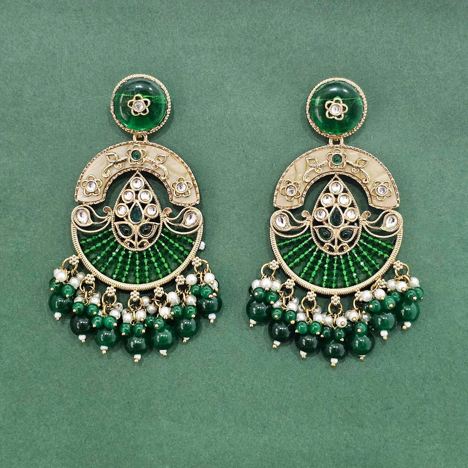 Handmade Indo-Western Fashion Chandelier Earrings in India Featuring Mother of Pearl with Mehndi Plating