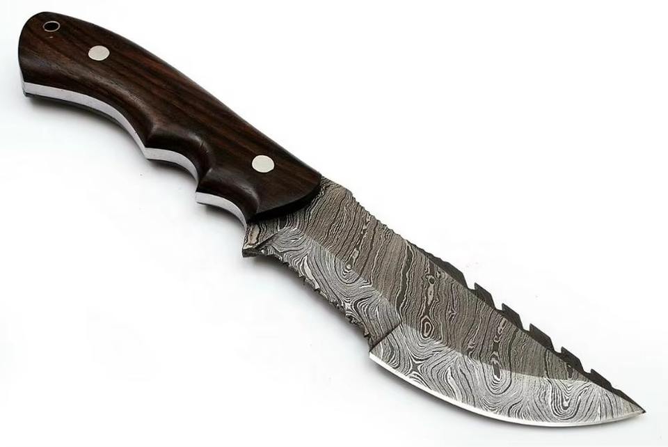 Handmade Industrial Grade Damascus Steel Hunting Knife with Wood Handle Leather Sheath OEM Customizable Perfect Gift for Camping