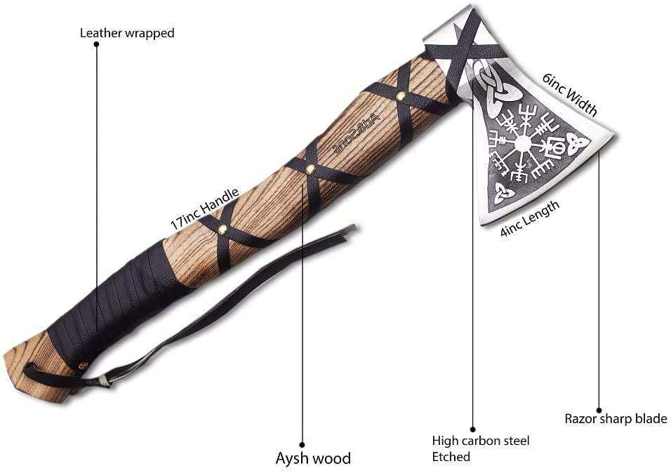 Handmade Industrial High Carbon Steel Tomahawk Hatchet Multi-Purpose Camping Outdoor Survival Axe Rose Wood Handle Leather 1.5kg