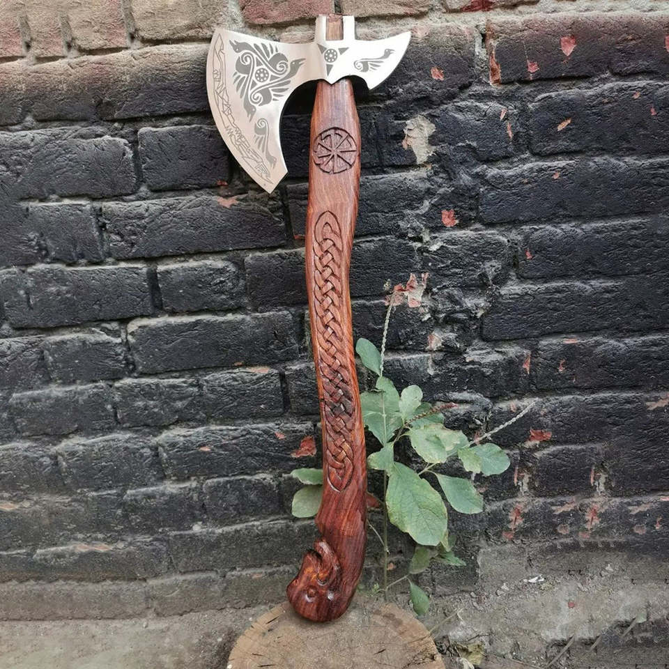 Handmade Industrial High Carbon Steel Tomahawk Hatchet Multi-Purpose Camping Outdoor Survival Axe Rose Wood Handle Customizable
