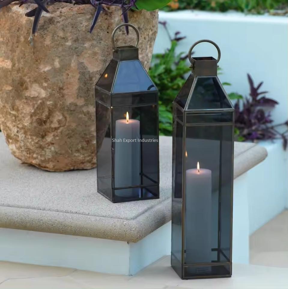 Handmade Iron Brass Metal Easter Candle Lanterns for Indoor/Outdoor Home Decoration Eco-Friendly Black Glass Tabletop Floor