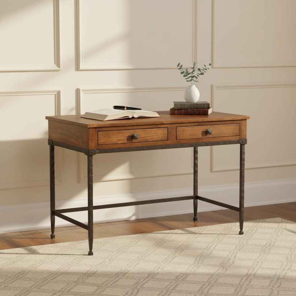 Handmade Iron and Solid Walnut Wood Desk Modern Rustic Writing Table with Storage Drawers Home Office Furniture Study Table