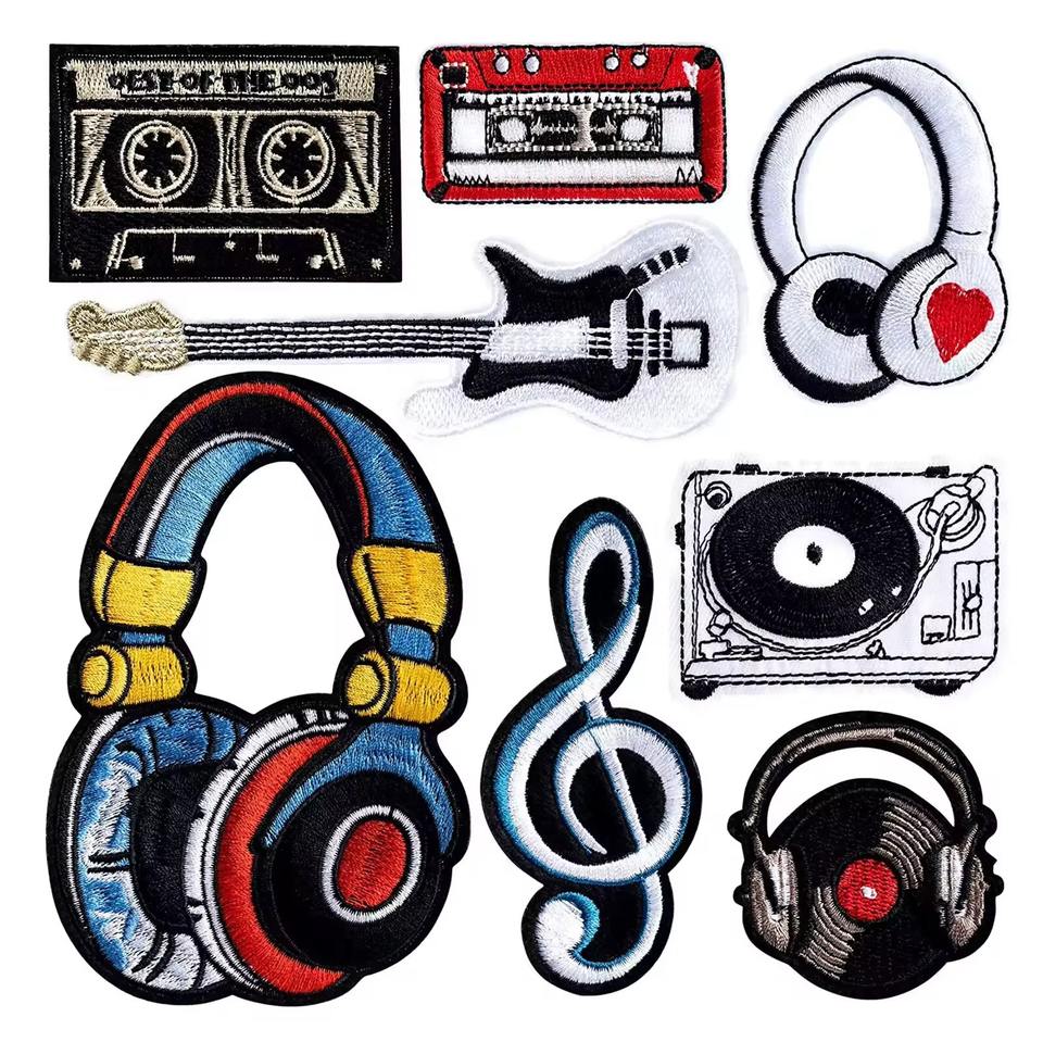 Handmade Iron-on Embroidered Patches Hip Hop Music Series for Jackets & Shirts Fabric Felt Applique Heart Flower Lightweight