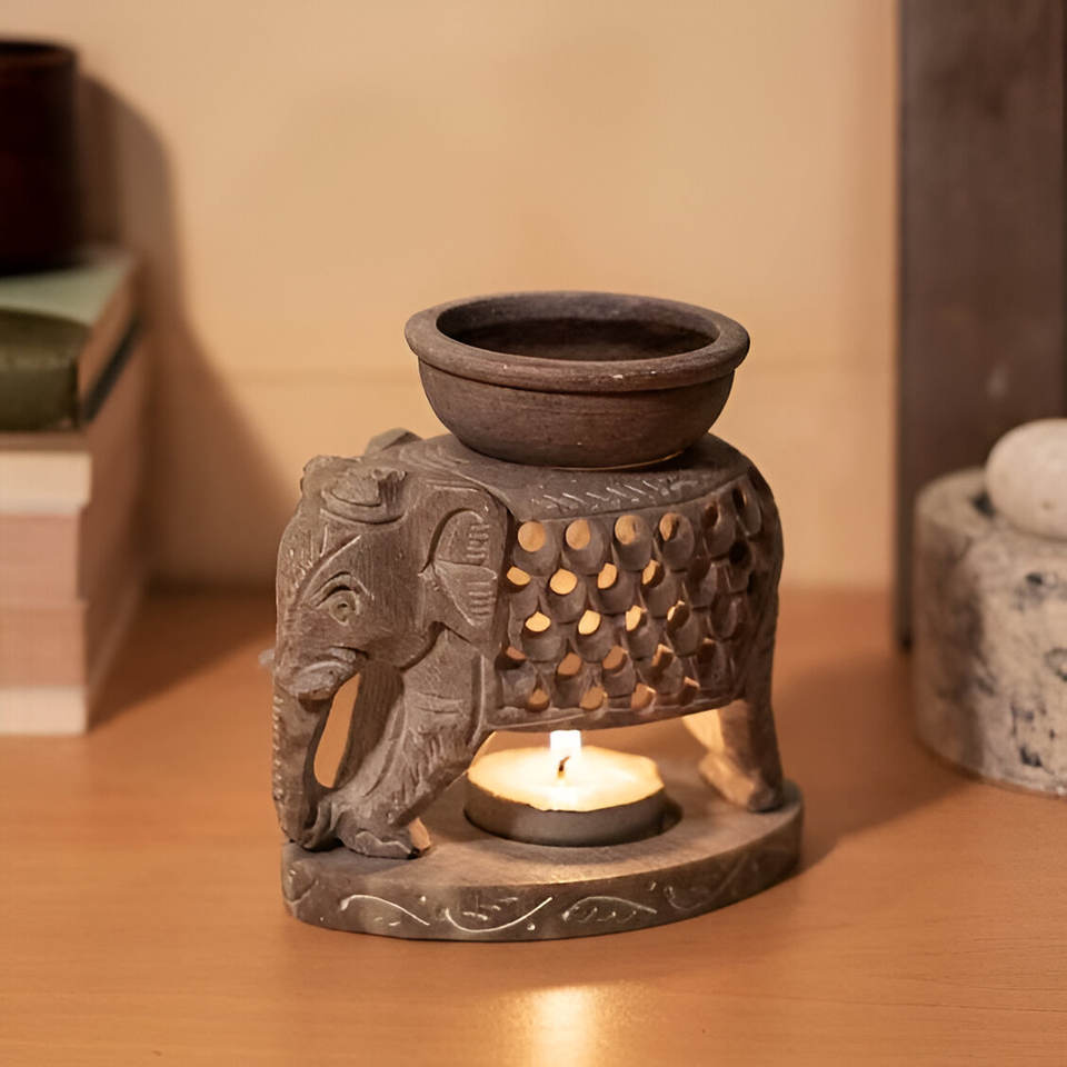 Handmade Jaali Carved Soapstone Oil Burner Luxury Aroma Essential Oil Diffuser Aromatherapy Fragrance Lamp Wholesale Supplier