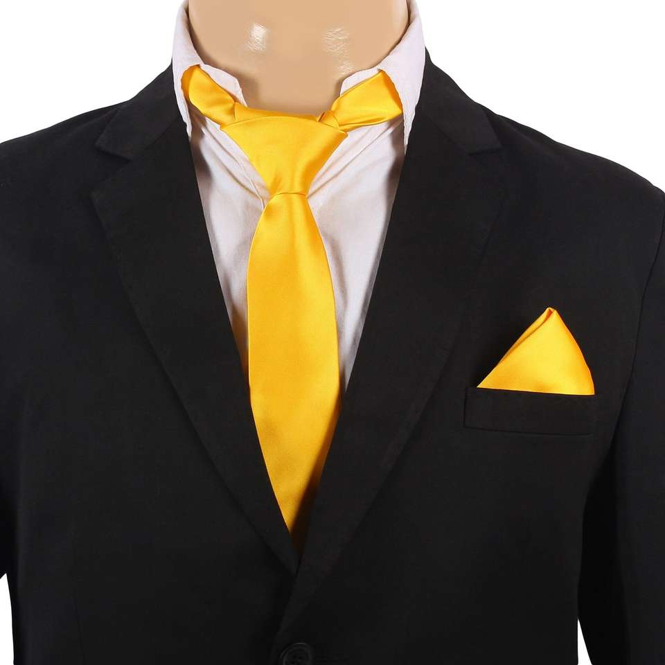 Handmade Jacquard Yellow Solid Necktie Woven Design in Silk and Wool Elegant Gift Box for Tie Gifts