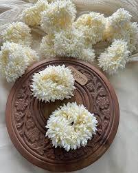 Handmade Jasmine Gajra Hair Scrunchie Artificial Flower Bun Accessory for Indian Wedding Haldi Mehndi Sangeet Favors