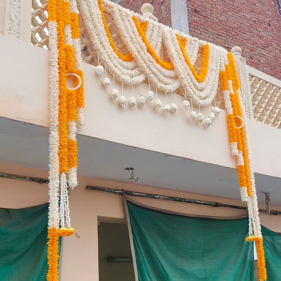 Handmade Jasmine Toran With Sola Wood Half Saree Function Mangalasnanam Pellikuthuru Haldi Mehandi Torans Jasmine Bandharwal