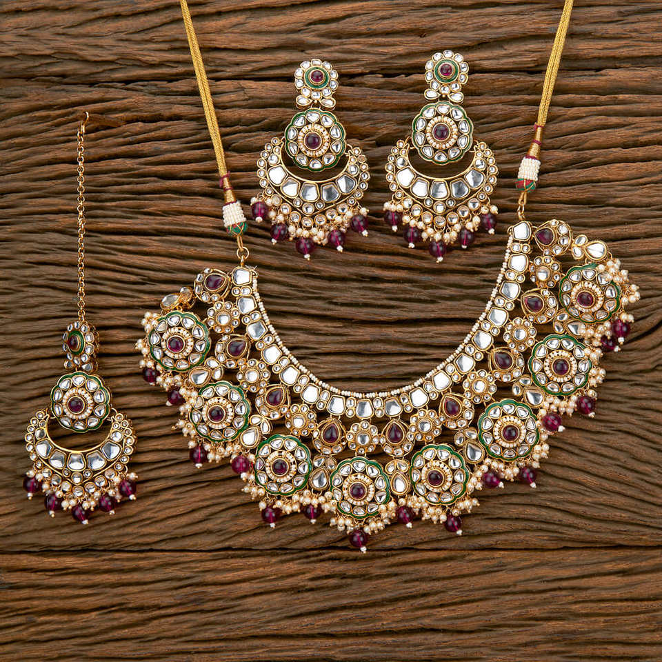Handmade Jewellery Indo Western Beads Necklace Set With Gold Plating Wholesalers in India