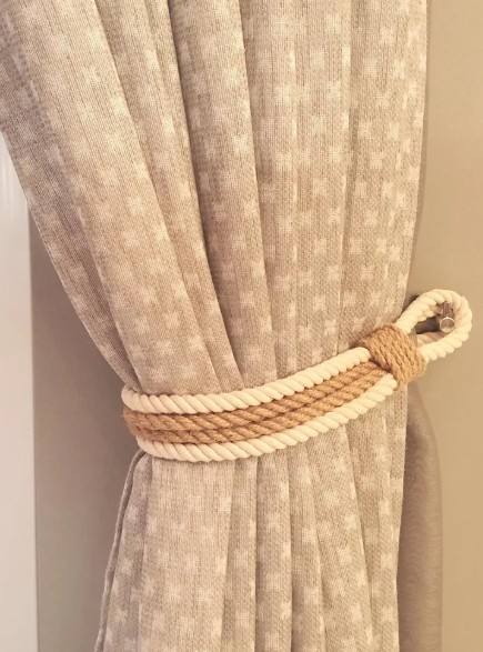 Handmade Jute & Cotton Rope Curtain Tieback: Rustic Boho Decor