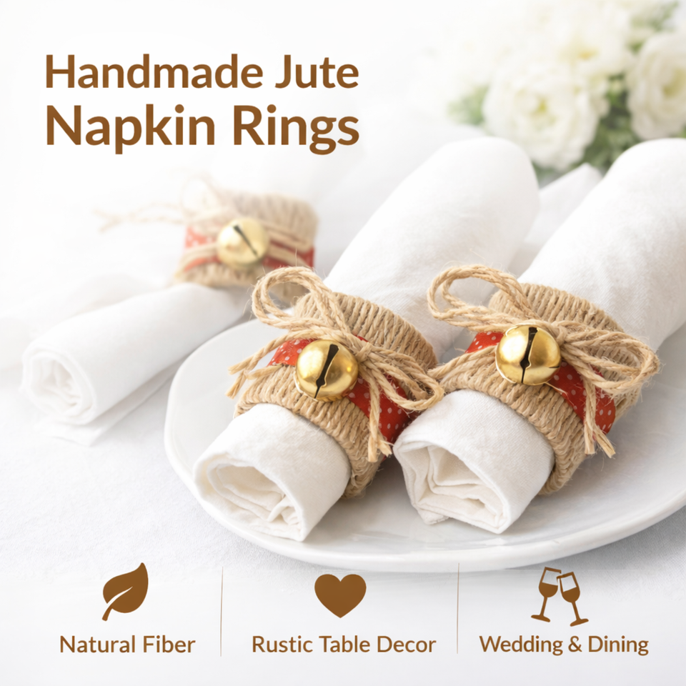 Handmade Jute Napkin Rings with Bell Rustic Design | Natural Fiber Napkin Holder Table Decor Wedding Dining Accessories Use