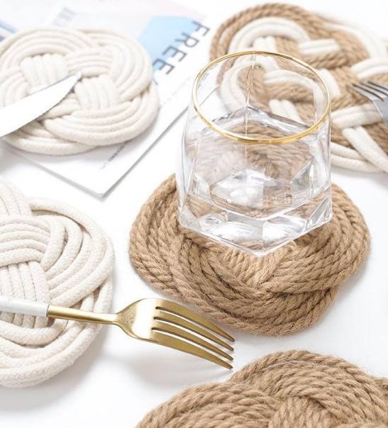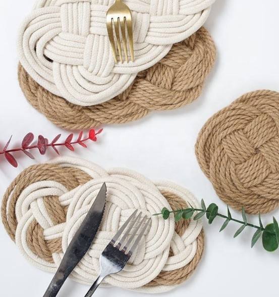 Handmade Jute and Cotton Woven Placemats Round Insulation Pads Place Mats Dining Table Gift Decorative Coasters
