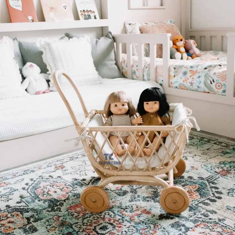 Handmade Kids Doll Strollers Wholesales Toy Baby Rattan Wagon Cart Kid Toys Prams for Dolls