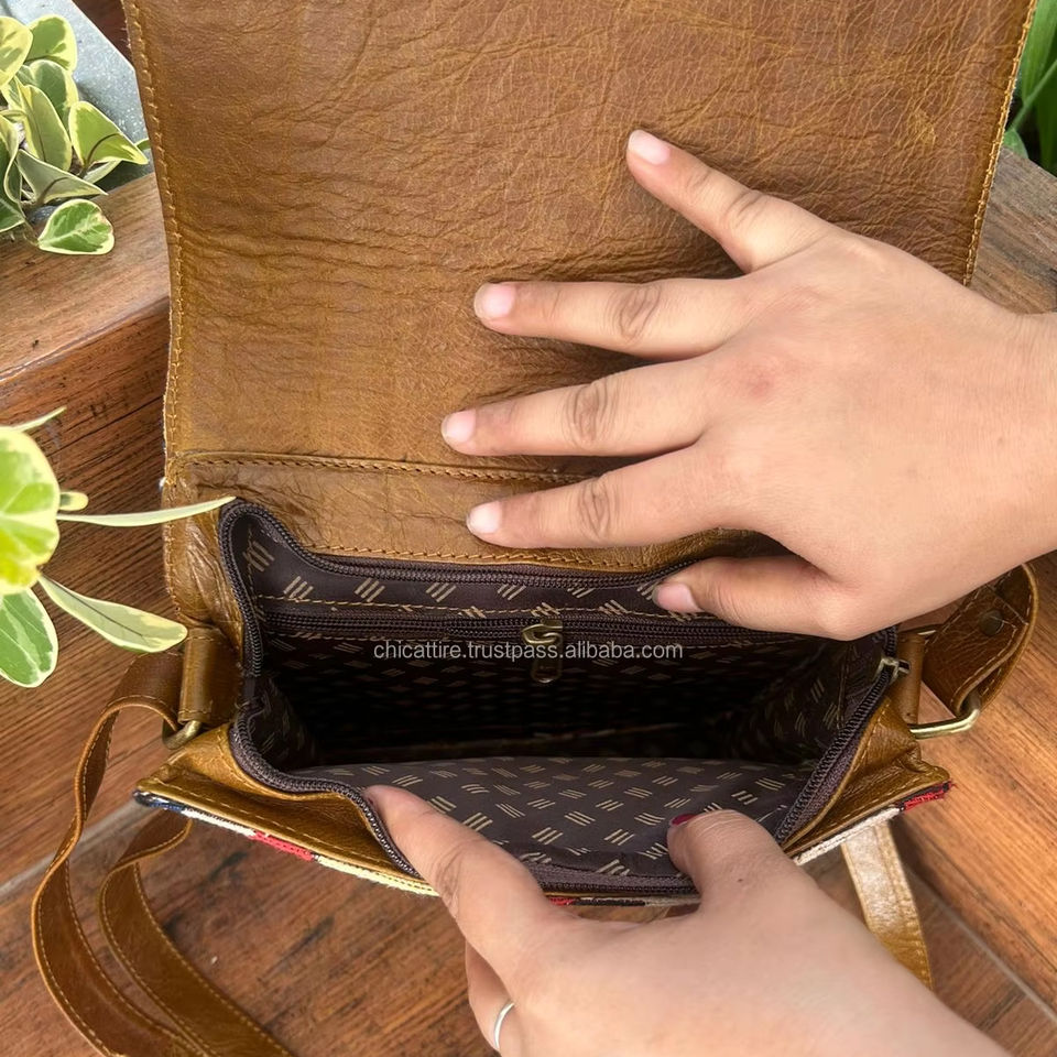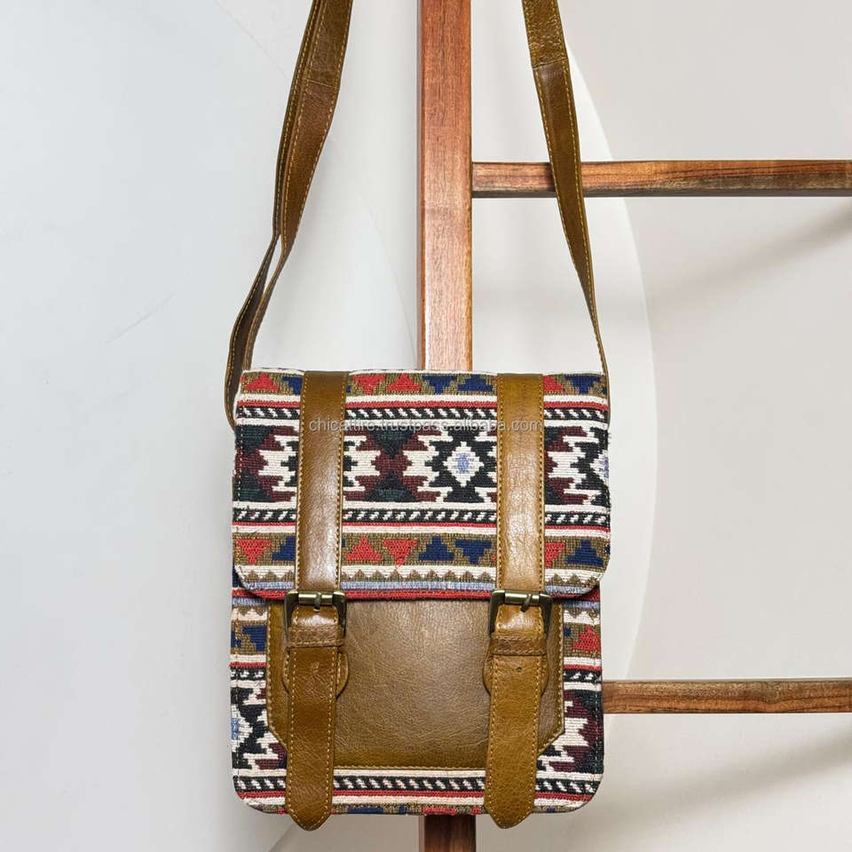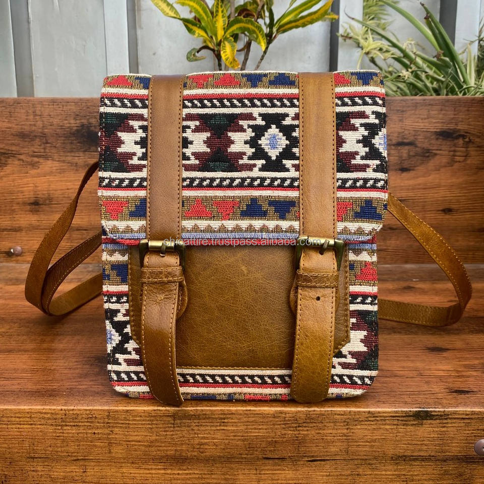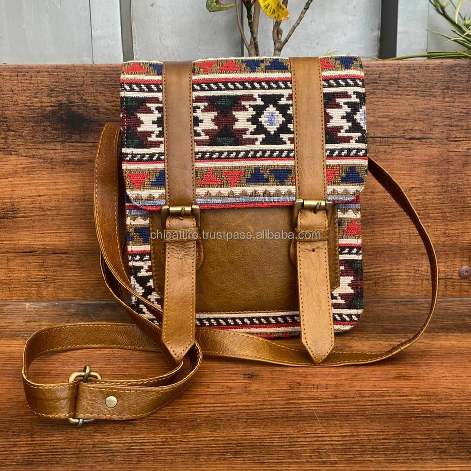 Handmade Kilim Leather Jacquard Fabric Crossbody Shoulder Bag High Quality Genuine Leather Ethnic Bag Vintage Handbag for Women