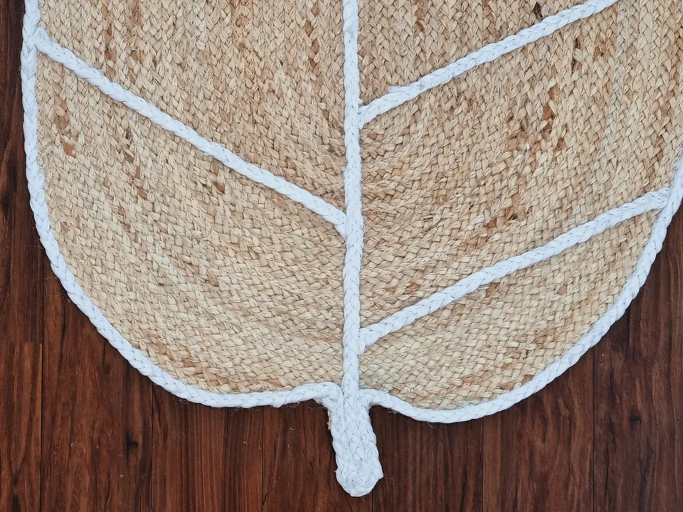 Handmade Kilim Style Decorative Jute Rug Abstract Leaf Pattern Tufted for Entryway Outdoor Patio Bedside or Living Room