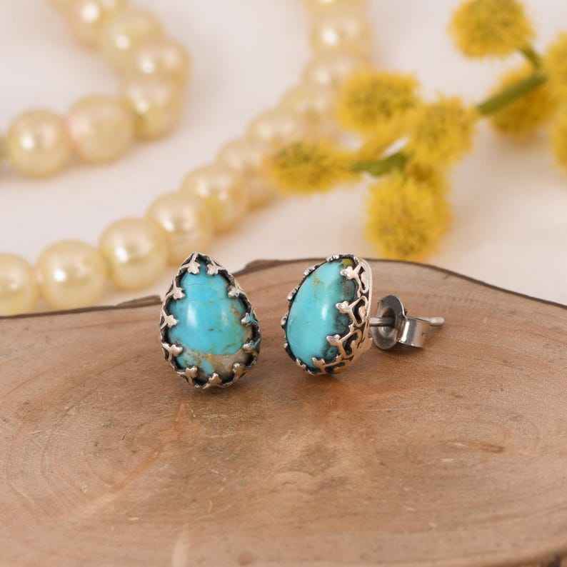 Handmade Kingman Turquoise Sterling Silver Stud Earrings Boho Tribal Jewelry