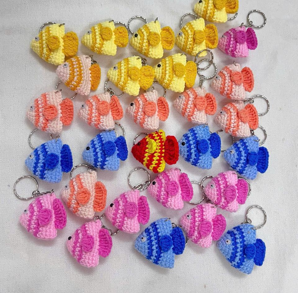 Handmade Knitted Crochet Bear Keychain Cute Yarn Animal Charm, Toy Doll Accessory