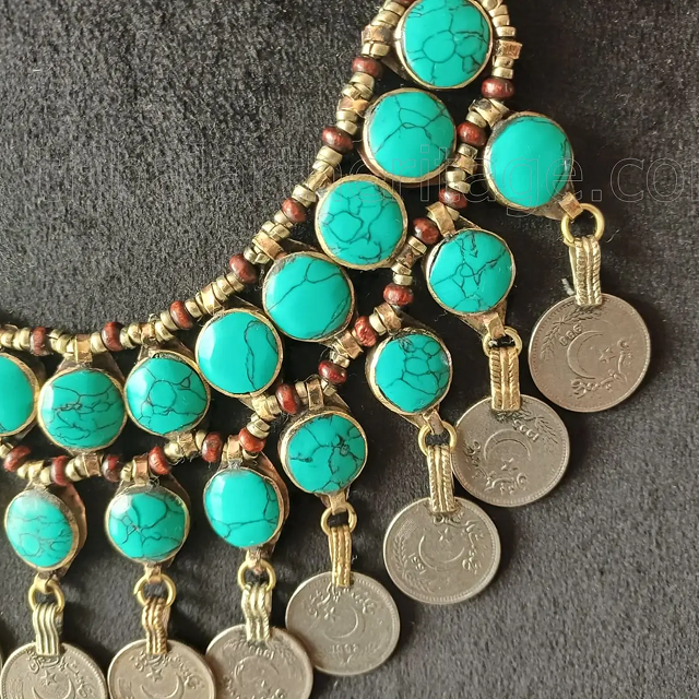 Handmade Kuchi Coin Necklace Tribal Fashion Jewelry for Women Afghan Ethnic Boho Style Necklace