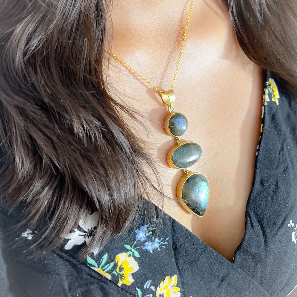 Handmade Labradorite Necklace Natural Gemstones Gold Plated Brass Pendant Healing Crystal Fine Jewelry Women Gift