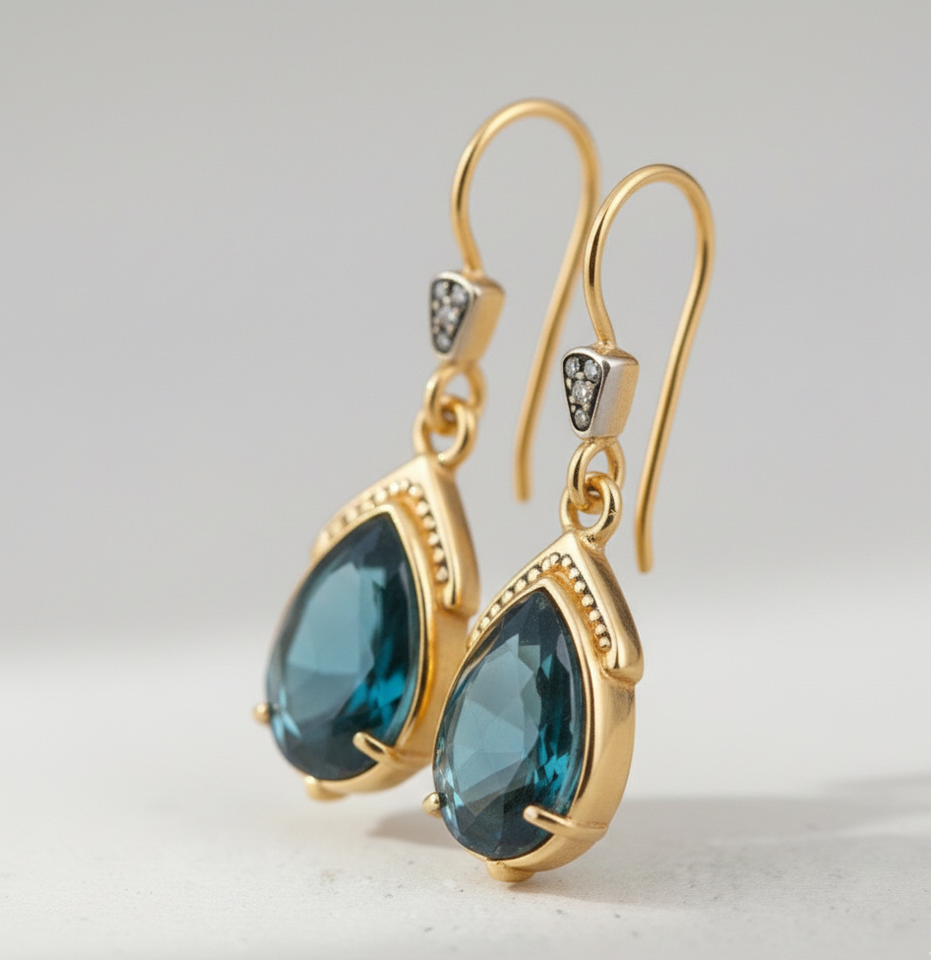 Handmade 925 Silver 18K Gold Plated Labradorite Earrings
