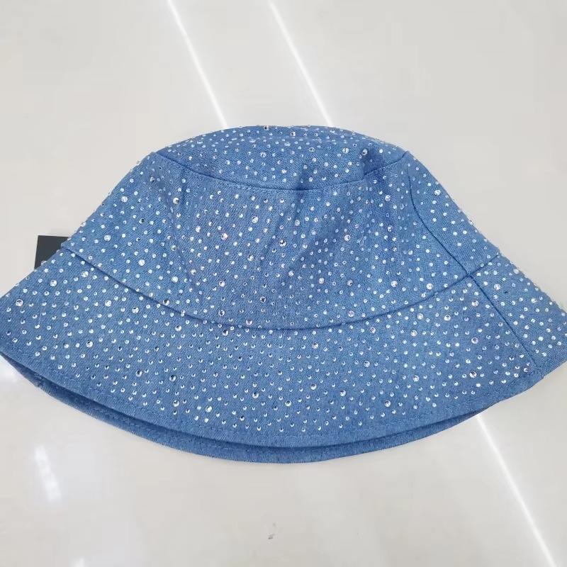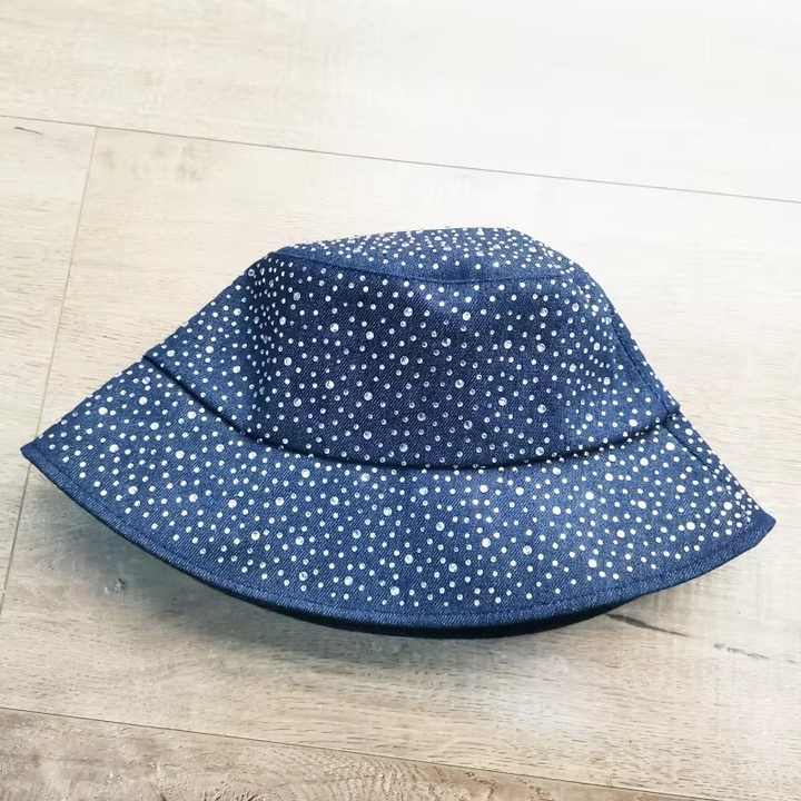 Handmade Ladies Diamond Bucket Hat Outdoor Fashionable Spring Autumn Season Printed Shiny Sparkling Rhinestone Custom Fishing