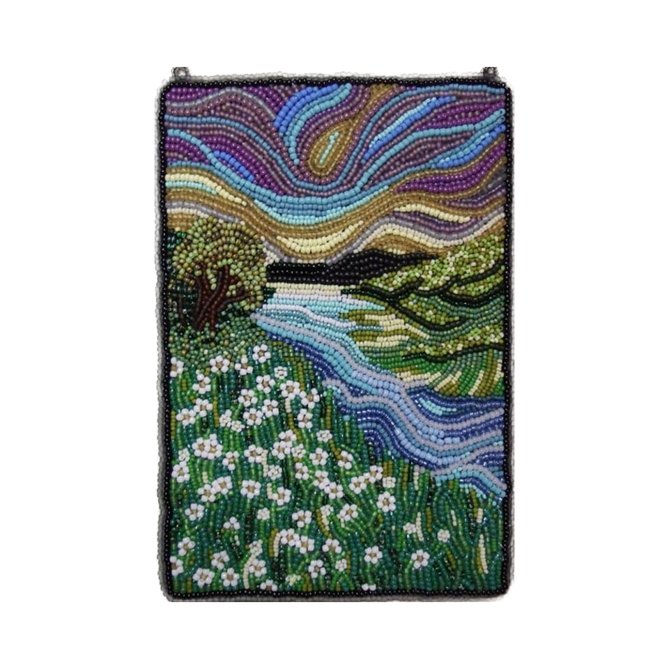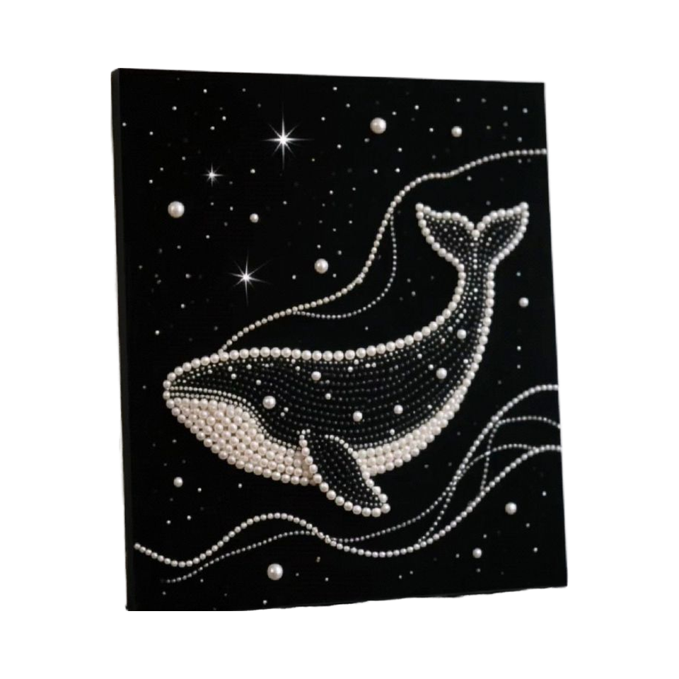 Handmade Landscape Wall Art Glass Seed Bead Embroidery Home Decor Panel Featuring Whale Ocean Mountain Nature Theme
