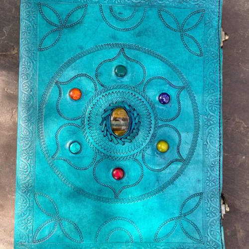 Large Blue Leather Journal with Seven Chakra Flower Stones