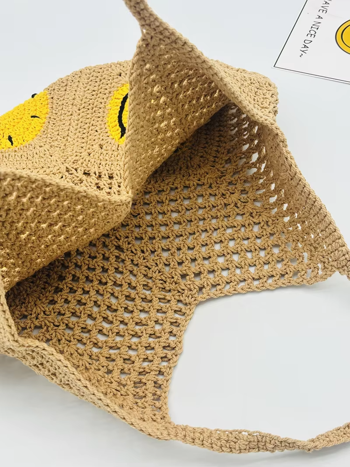 Handmade Large Capacity Cotton Square Woven Crochet Beach Bag Casual Artistic Versatile Geometric Shoulder Knitted Bag