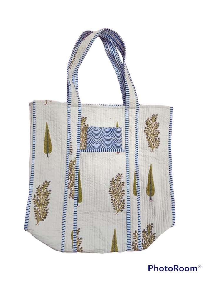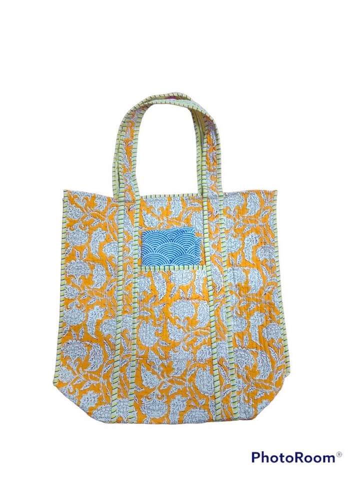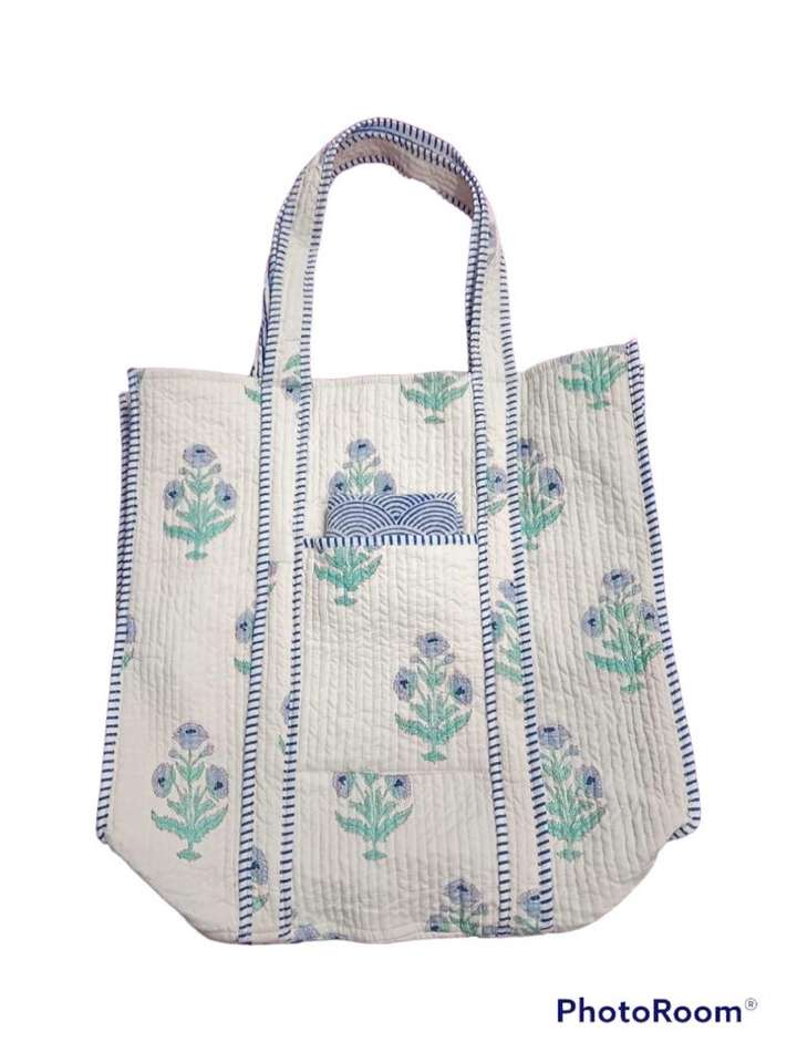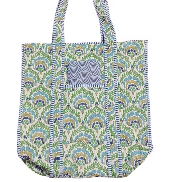 Handmade Large Quilted Cotton Tote Bag with Open Closure Boho Flower Decorated Shoulder Bag for Yoga Shopping Beach Use